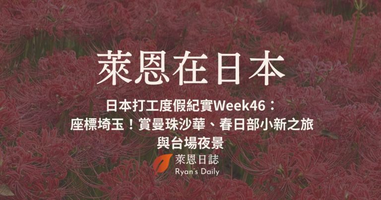 萊恩在日本 S5E46:日本打工度假紀實Week46:座標埼玉!賞曼珠沙華、春日部小新之旅與台場夜景