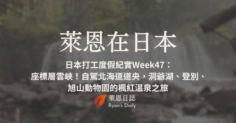 萊恩在日本 S5E47:日本打工度假紀實Week47:座標層雲峽!自駕北海道道央,洞爺湖、登別、旭山動物園的楓紅溫泉之旅