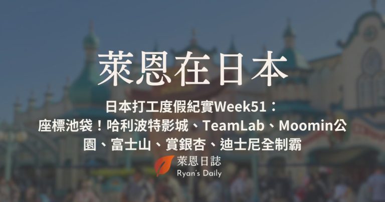 萊恩在日本 S5E51:日本打工度假紀實Week51:座標池袋!哈利波特影城、TeamLab、Moomin公園、富士山、賞銀杏、迪士尼全制霸