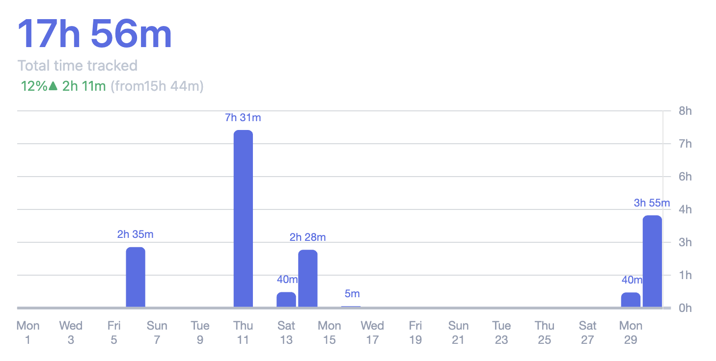 本月統計時,納入了接案之外,自己的工作項目:寫書、Podcast 和寫部落格。