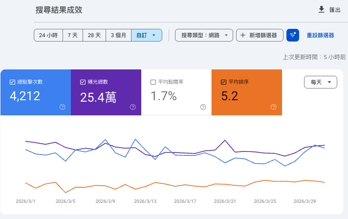 | 自然搜尋新使用者 | 3,503 | 2,976 | +18% |
