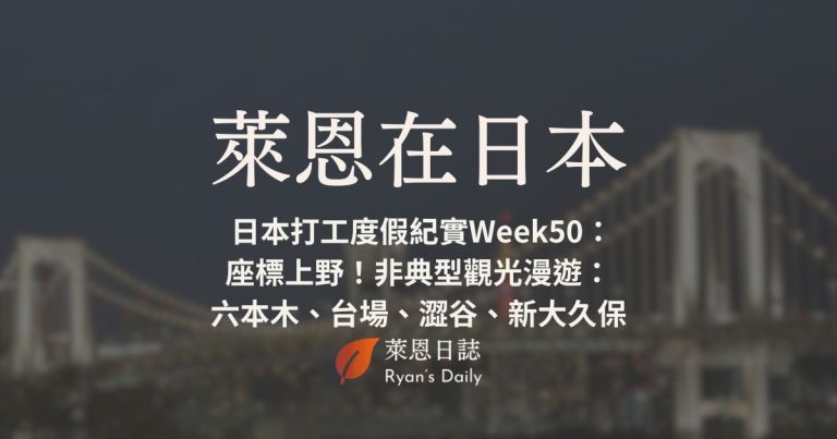 萊恩在日本 S5E50:日本打工度假紀實Week50:座標上野!非典型觀光漫遊:六本木、台場、澀谷、新大久保