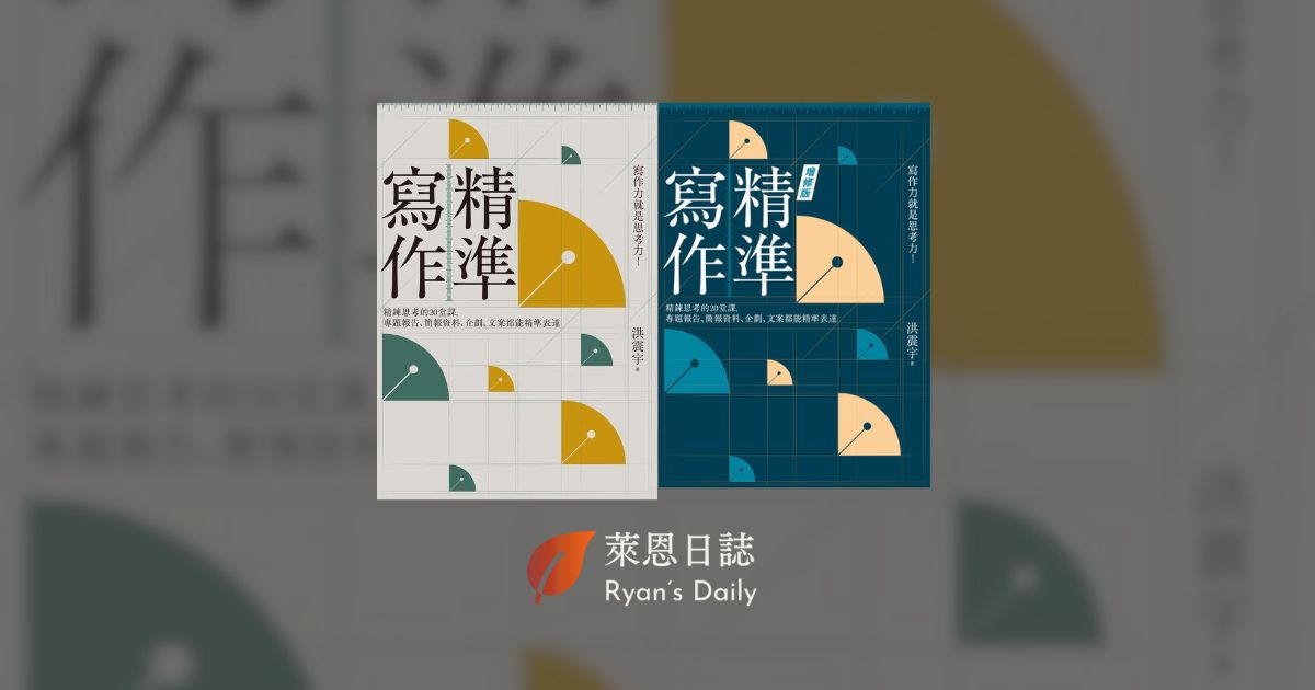本集我分享了一本再次重讀、依然受用的書:《精準寫作》,作者是資深媒體人洪震宇,他以多年媒體與企業顧問經驗,整理出一套幫助讀者「有效傳達想法」的寫作技術。