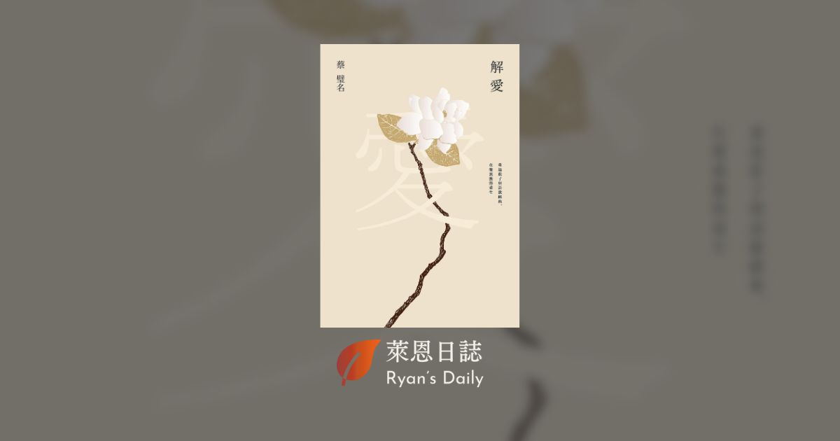 Ryan 分享,解愛這本書是書櫃中會反覆回讀的心靈書單,特別在情感波動時更為受用。
